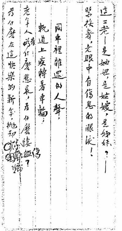 编者按:该诗已收入《志摩的诗》(【全二】七二)。惟最后一句句首较手稿多一“这”字。