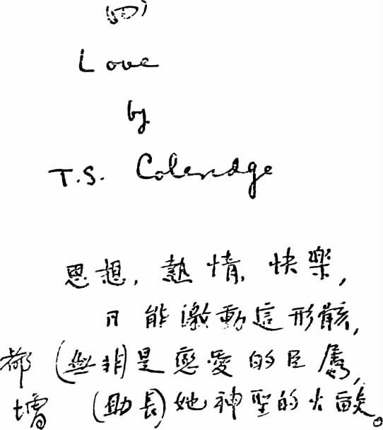 伟大的时间坐在你的脚边眷恋,他小语着:说话,对我说话,我的恋爱;开口呀,我的新娘!