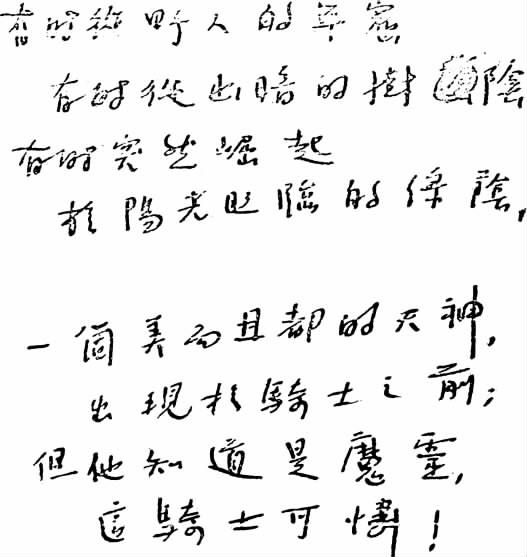 但是你的话像是佛像似的封禁在石壁里,美呀,不可动撼的美!