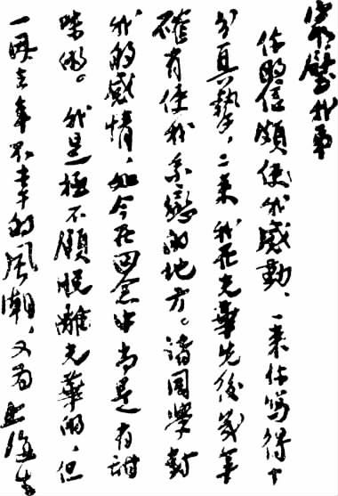 常我进大学的第二年,你又来我校执教,你教的许多学程中,最使我感动的,是散文课上那本Walter Pater的Renaissance,许多同学都不赞成这一课,而我就觉得只有这一课,给了我最大的影响。关于文字运用方面参人声韵和格调,及整篇文字的组织与意义之含蓄等等,给了我一种Consciousness of the beauty of form,而你自己的另创一格的诗的散文,使我们在中国新文学上格调奏于美化的信心,有了一种更切的认识。Pater的文章加上你的人格,本身已织成了一件艺术品。所以我们在课室里,虽没有正式的讨论过作文之法,然而你这样按韵的念下去,在我们的灵感上,已赐予相当的训练了。