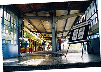 有乘客默默坐在长条椅上等待,薄薄的嘴唇抿成了一条细线,好像上演《等待戈多》。在默默等待的乘客旁边坐下,叹一口气,觉得什么都不用等,真是太好了。小时候打碎了无线电上的小雕像,忐忑了一整天,等到傍晚,母亲回来了,发现了,惩罚过了。独自来到阳台上,心情是难过的,也有逃出生天的轻松。小小的希望,甚至淡淡的欢愉,都在徜徉。这种悲喜互见,并不十分难尝。在厨房窗前能看到这个车站深绿色的顶棚,还有通向车站的浅绿色铁桥。红色列车缓缓开出,如果看,还是很耐看的旧世界遗景。