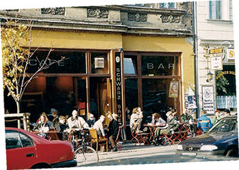 这是一张旧照片,十年前在柏林街上拍的。在旅行中,常常会突然拿起照相机来拍照,好像没什么目的。十年前我还在用胶片,用胶片的人大多都本能地节省,每按动一次快门,都在心里知道意义何在。而我,有时只是莫名的冲动,只想留下些什么。大约,这张照片是为了下午的阳光太好吧,那堆从咖啡馆内移出来晒太阳的大学生们,就是阳光好的证明。