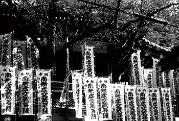 ◆ 镰仓武士家族总有灭门之灾。长谷的小街深处,十二世纪被灭门的武士家成了小寺院,院落里种了几十种紫阳花。春意深重的黄昏,有人在院落里浇花,水声落在叶上,别无他响。神社前照例悬挂着远远看去触目惊心的祈祷的旗 幡。