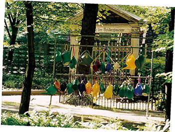 去世的人与未亡人之间,有种心灵的联系会长久地存在。我从不相信一个人死去后,就会完全从这个世界上消失。每次我去这柏林的墓园,经过这个明媚愉快的水壶架子,心里都会浮起那些我惦记的死者,他们没有病痛时的样子,他们好像垂下头微笑着,总是安适而快活,甚至那些自杀者。我相信因为死者已某种形式仍旧活着,和未亡者们仍旧心心相印,他们仍为自己心中还留着对方,而忍不住微笑。死者在墓碑后等着他们来墓上探访,微笑地接纳他们的照料,因此,这些水壶才会这么干净好看。死对亲爱者来说,是一种感情的开始,而不是结束,这是我在这个墓园里学到的,但要等多年以后我自己经历了亲人的故去,才理解这一排水壶在人生里的象征意义。