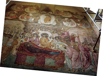 2014年第一片雪花飘落在塞尔维亚中部的群山之中时,我去探访一座大山深处的12世纪东正教道院。大多数塞尔维亚道院的古老教堂都失,但这座世界文化遗产,由于被世人称为乔托之前的乔托,壁画博物馆而得到联合国的拨款,得到细致的整。在正对圣祭坛的墙上,赫然出现了圣母升天图——这是一幅描绘马利亚如何去世的壁画——她的儿子在最后时刻来到她身边,他怀抱着一个白布包裹的婴儿,象征着马利亚纯洁的灵魂,犹如新生婴儿。十二世纪的士在塞尔维亚优美寒冷的摩拉瓦河谷深处的道院里画画时,他并不知道几千公里之外的拜占庭古国的山坡上,马利亚死在一座小石屋里。