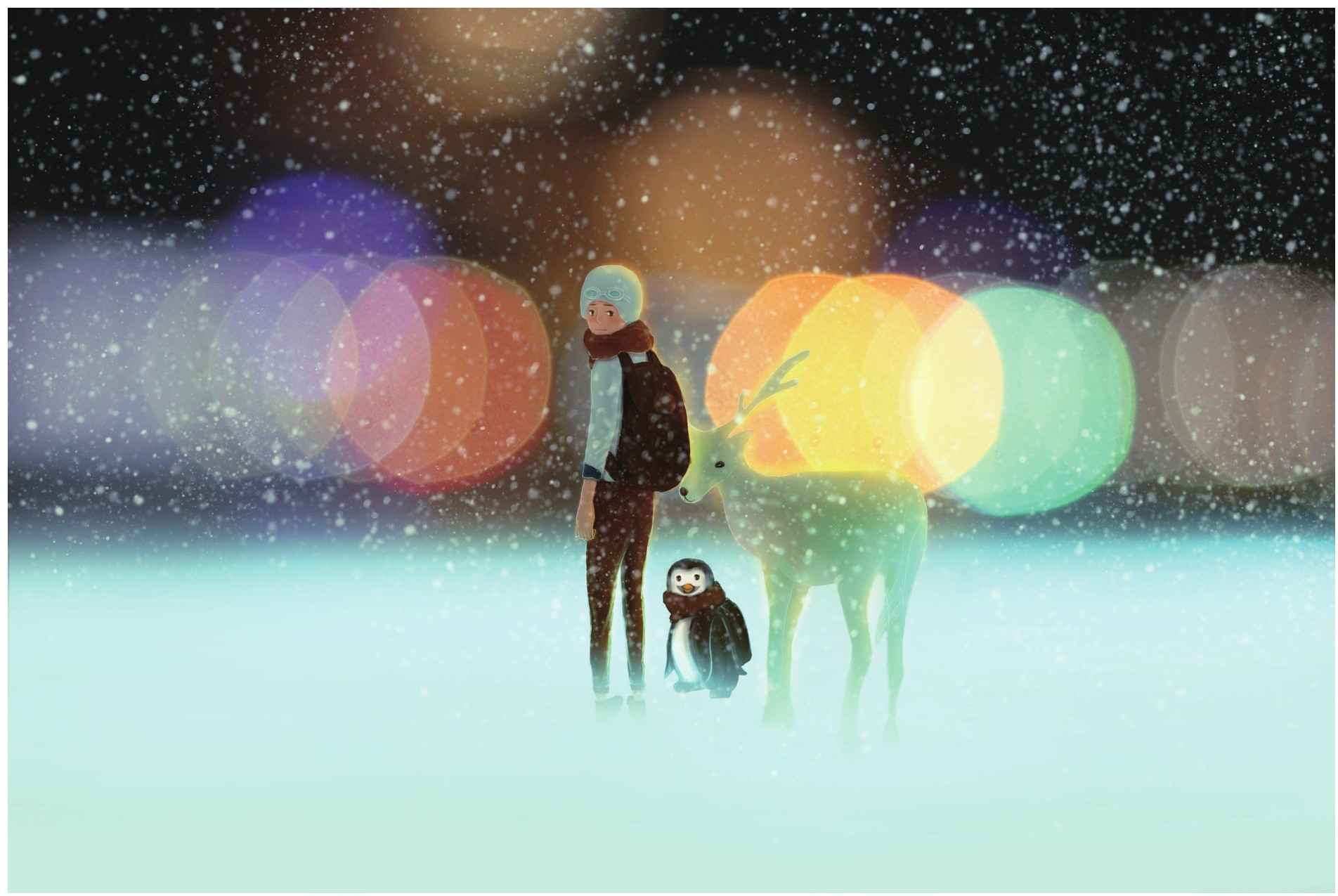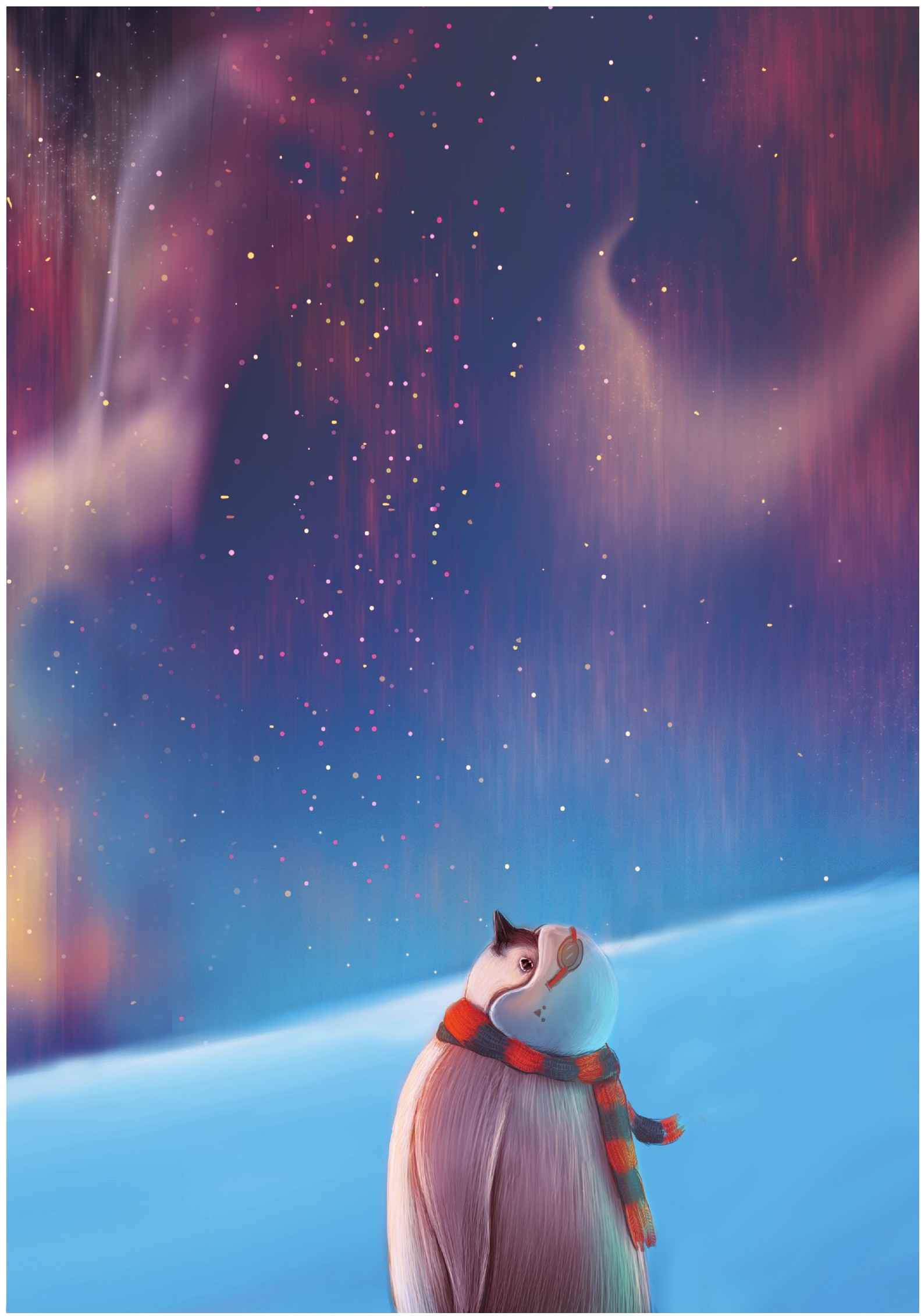 回家的路上,突然下起了小雪,小小兔有些想念大熊和妈妈做的胡萝卜素饼了……