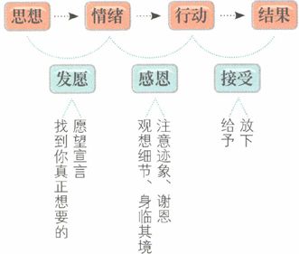 阿南点点头,接口说:“然后在感恩阶段,你要身临其境地观想事已成的状态,散发出那种感觉。而如果在生活上看到任何宇宙的回应,就要立刻感恩,好扩大它的影响力。”