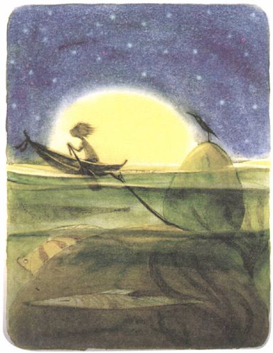 “很好!”渔夫很满意。他已经整理好了他的渔网,一跃上岸,来到阿南身边,“你坐下来!”阿南依言和渔夫在海边坐下来。