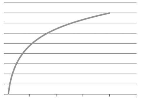 可是,如果我们从另外一个角度分析,就会知道那所谓的“一点点”的差异究竟有多么惊人。形象一点讲,在任何学习过程中,如果把进步程度投射在纵轴上,把学习所需要投入的时间和精力投射在横轴上,得到的曲线往往与“对数曲线”非常类似: