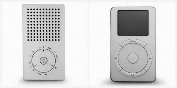 左侧为Braun1958年的收音机外观,右侧为iPod一代的外观