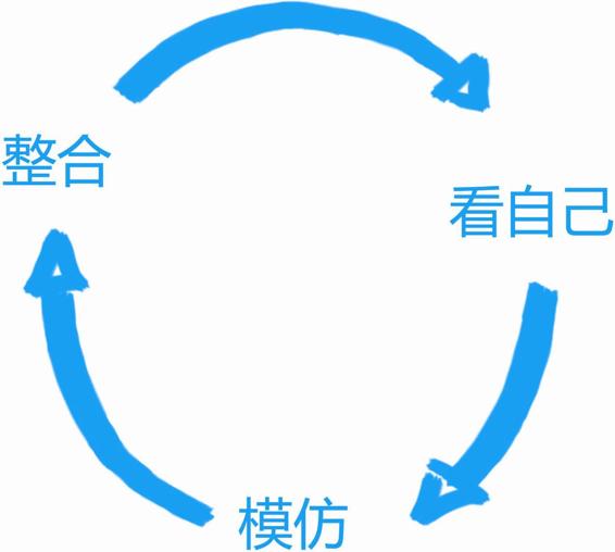 其次,这是一个循环。当迷茫的时候,先仅凭个人感觉找个标杆,去“模仿”,然后再次关注个人的感觉和模仿,用禅语来说:“留一只眼睛看自己。”才有机会“偷”到自己身上。