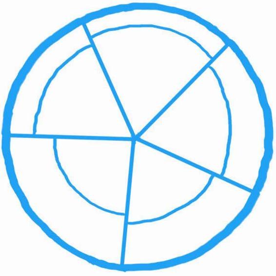 第四步,你把每个分值画到每个扇形里,这样在这个圆里,就出现了8个大小不一的扇形。
