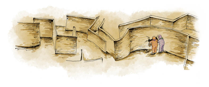 这幅画面让他感到惊讶,但也很开心。他看见自己在迷宫中不时迷路,但是坚信最终一定能够找到新的奶酪,找到久违的幸福。于是,他重新鼓足了勇气。