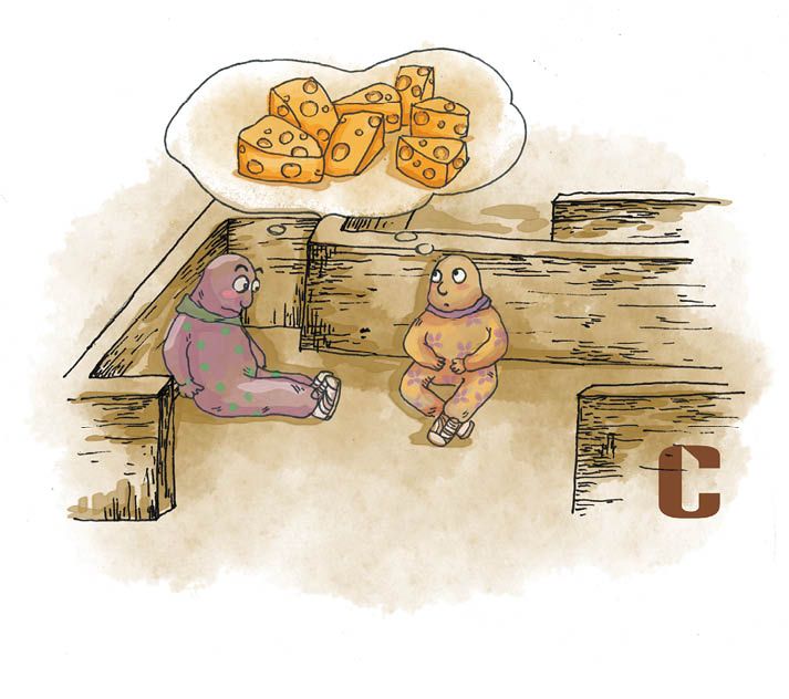 唧唧也希望哼哼说的是真的。于是,尽管他没抱多少希望,但每天都和哼哼一起到奶酪C站检查一下。然而,奶酪再也没有出现。