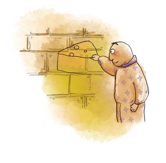 有时候,唧唧会想象嗅嗅和匆匆找到了奶酪而且正在享用它们。他忽然有一股冲动,想重新进入迷宫探险。在迷宫中探险,然后找到新鲜的奶酪并尽情享用,那是一件多么美妙的事情啊!想到这些,他几乎都可以闻到奶酪的香味了。