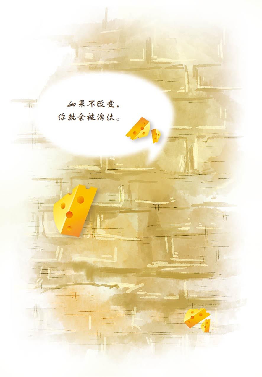 “因为,奶酪不会回来了,”唧唧回答道,“我也不愿重新回到迷宫,但是现在我明白了,他们是不会把以前的奶酪送回来的。现在该去寻找新的奶酪了。”