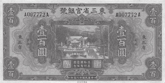 奉天当时是东北的金融枢纽,东三省官银号发行的“一二大洋汇兑券”奉票,是一种当时在东三省流行的货币兑换券,也就是流通的纸币,面额有10元、50元和100元的。奉票在当时是硬通货,一块钱能换一个银元,且不贬值。据鲁迅日记记载,1923年,阜成门6间房的四合院只要800元,因此,100元的钱在当时是比较少见的