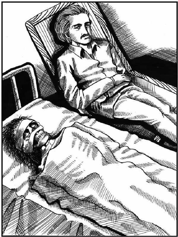一个钟头这样过去了,这时我又第二次(这是可能的吗?)听到从床铺那里发出一声模模糊糊的声音。我怀着极端的恐惧,仔细谛听。声音又传来了——是一声叹息。我急忙冲向尸体,看见——清楚地看见——嘴唇抖动了一下。很快就放松下来,露出一线明亮的珍珠色的牙齿。原先我心中只是极度害怕,这时又加上了惊异。我感到我的视线模糊了,思想紊乱了;费了好大的劲,我才终于使自己提起精神,去做那责任感又一次向我指出的事。这时,其前额、面颊和喉部都现出一些微红;可以感觉到整个躯体都有热气;甚至心脏都微微跳动起来。这位小姐还活着;我便以双倍的热情来进行使它复活的工作。我擦洗了她的鬓角和双手,用尽了经验及不少医书上所提供的各种办法。但是,一切都枉费心机。突然,血色消退了,心跳停止了,嘴唇重又现出那种死人的表情,接着,整个尸体又显出冰凉,青灰,梆硬,皮包骨,显出几天以前就成了死人的一切令人恶心的奇形怪状。
