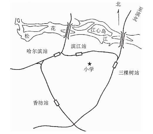 洪钧看了一眼肖雪,才说:“一位朋友送我去了滨江站,赶上了那趟火车。那次经历使我注意到在哈尔滨上火车有个‘时间差’问题。我仔细研究了哈尔滨市地图,发现铁路线很有意思。诸位对哈尔滨都比我熟悉,所以我一说你们就清楚了。哈尔滨的铁路在市区形成一个环线。三棵树站在这个环的东北角;哈尔滨站在西北角;滨江站在北边;南边还有香坊等站。”洪钧一边说着,一边拿出笔在茶几的纸上画了一个草图。“去滨北县的火车就从三棵树站北边的江桥跨过松花江。如果火车从三棵树站发出后直接往北走,大约只要二十分钟就可以驶过江桥离开哈尔滨。但是,那列火车并不这么走。它从三棵树站发出后先向南走,然后向西北经过香坊站,再向东北经过哈尔滨站,再向东经过滨江站,最后再折向北穿过江桥。这就是说,火车在驶出三棵树站之后要绕上一大圈才离开哈尔滨呢!我查了一下,那趟火车九点五十分从三棵树站发车。它在香坊站、哈尔滨站和滨江站都要停车,所以它最后从滨江站开出的时间要在十一点十分左右。请注意,这里有一小时二十分钟的时间差!而且,谷春山在三棵树提前进站还给他增加了大约半个小时的时间。我推断,谷春山到哈尔滨后先打电话预定了一辆出租汽车,晚上在三棵树车站等他。当李处长和吴队长跟他告别之后,他并没有去上火车,而是溜出火车站,找到那辆出租车。然后他坐出租车来到李青山那里。他大概不会让出租车一直送他到学校门口,而是让车在附近的街上等他。对他这位老公安来说,完成现场上那些动作大概有半个小时就足够了。然后他回到出租车上,直奔滨江车站,从从容容地登上那趟开往滨北的火车。我不得不承认他的这一整套行动都设计得非常精密!我真想知道他是从哪儿得到的灵感!”