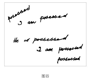 他从口袋里掏出一个皱巴巴的信封,扔给我。这是一份很奇怪的文件。一个简单的、肮脏的旧信封,上面有几个潦草的字,很明显是随便写上去的。下面是复印件(见图四):