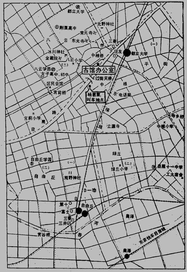 栋居心里瞎猜着来回踱了一会步,然后穿过人行挢,来到八云一侧。从人行桥朝目黑方向走一段距离,有幢面向目黑路的大楼,古馆的办公室就在大楼里面。大楼的底楼是超级市场,二楼以上都是公寓。古馆死后,他的办公室照例应该已经迁出了。
