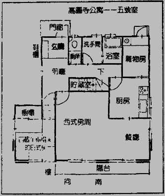 “首先是高圆寺公寓绿川的房间平面图上的情形。朝南的阳台接着八个榻榻米大的客厅,和四个半榻榻米的餐厅。这种隔间的方式,和赤羽的房间非常相似。只是在赤羽的房间里,交界处有折叠式的屏风,发现尸体时虽然是关着的,但带进星村时把它移开,让他睡着后再栘到高圆寺公寓,很容易让人发生是同一地点的错觉。屏风一定是搬家以后关上的。在绿川的八个榻榻米房间里,虽然有三件式的沙发、壁橱、收音机和挂钟等,但这三件式的沙发,是一般客厅里都能看到的普通样式。其次是壁橱,这是组合式的,很容易分解,摺叠成很小的体积,那儿虽然陈列着C版社出版的世界文学全集和H出版社出版的百科字典,但这是可以单独移动的书橱。”