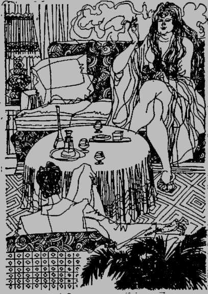 过了一会儿,她披着浴巾走出浴室。可是,仍然感到隔壁的接待室里好象有人,不禁打了个小小的寒战。照顾客人,时间不会这么久呀!